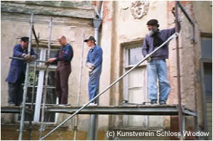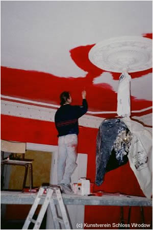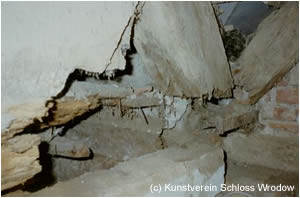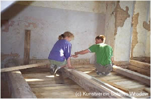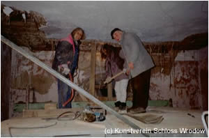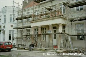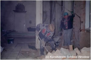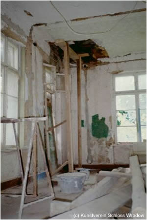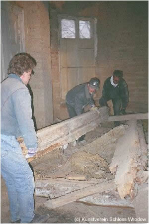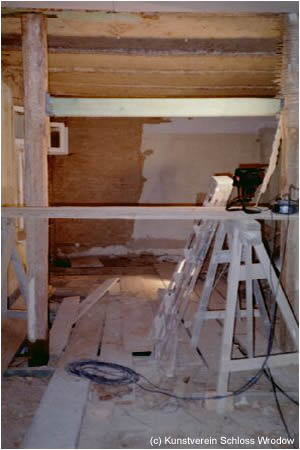 runter, Dielen abgeschliffen, Eckpavillon gebaut. 1993 in Wrodow
